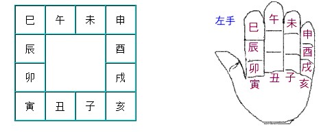 十二地支相对于左手掌的位置:![]()